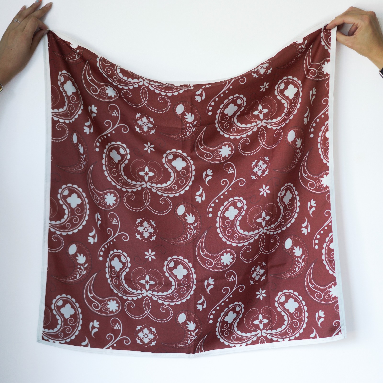 Pañuelo de 70x70cm en tono terracota, ideal para temperaturas cálidas